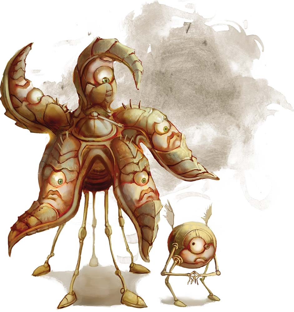 “57EV1E (Stevie) is a Pentadrone of the Plane of Law that was found imprisoned in the bowels of The Ivory Tower, guarded by a metallic chimera, for unknown reasons.”