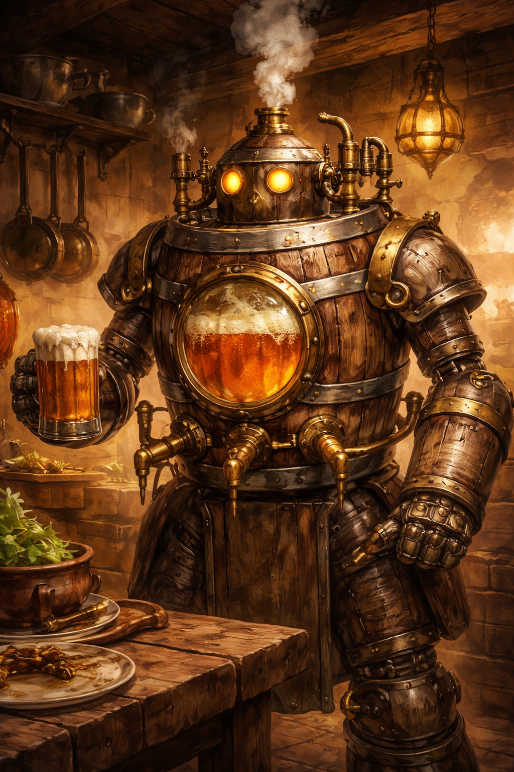“He contains the magic hops, that were found on the corpse of another keg robot in Session 1, and produces liberal amounts of excellent beers.”