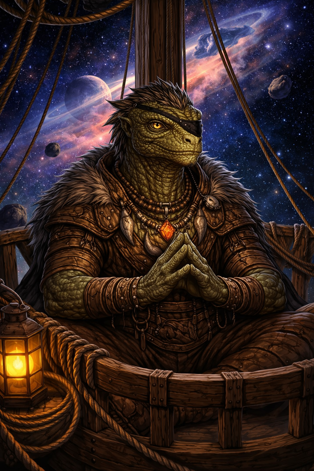![]() | “Vask is a deeply spiritual Lizardfolk member of the crew of The Second Wind, under Commodore Crux. " "He was previously the unreliable lookout of the ship, having poor vision with one eye, and frequently meditating with the other closed while on watch.” “He is currently quartered with Bubba and assists him in his alchemical endeavors, being something of a substance enthusiast.” |